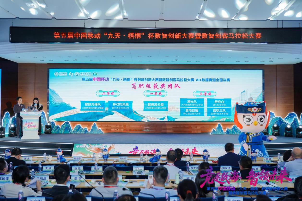 3月31日,第五届中国移动“九天·梧桐”杯数智创新大赛暨数智创客马拉松大赛颁奖典礼圆满落幕。在这场云集全国769所高校、3288支团队的顶尖赛事中,来自大同数据科技职业学院的大数据技术专业大一新生——王一博、李承迅、段圣洁、杨心茹、张述涵组成的团队,凭借其创新的技术方案与扎实的专业能力,力挫群雄,一举斩获高职院校组全国一等奖;郝晋、白然之、肖赫、王晓汝、邓雅情组成的团队荣获二等奖;曹金琦、鲁杰铭、张琦、郭晨露组成的团队荣获三等奖;指导教师夏文锴、杜卉荣获“优秀指导教师奖”。此次夺冠,不仅是我校青年学子在国家级A类科创赛事中的重大突破,更是一所新建高职院校人才培养实力的惊艳亮相。